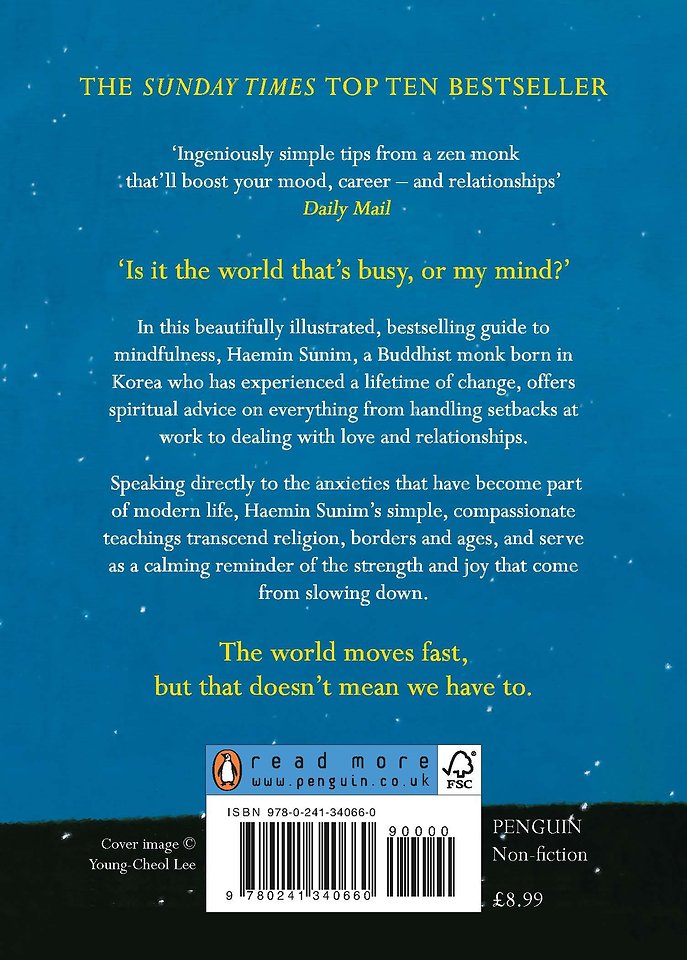 Hugely popular in Korea, Haemin Sunim is a Zen meditation teacher whose teachings transcend religion, borders and ages. With insight and compassion drawn from a life full of change, the bestselling monk succeeds at encouraging all of us to notice that when you slow down, the world slows down with you.