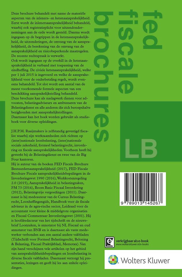 De auteur staat eerst stil bij de inlenersaansprakelijkheid, waarbij ook de registratieplicht voor uitzendondernemingen aan de orde komt. Hierna buigt de titel zich uitgebreid over de definitie en toepassing van de ketenaansprakelijkheid. Wat zijn de essentiële begrippen en uitzonderingen hierbinnen? Wat is de omvang van de aansprakelijkheid en hoe laat deze zich berekenen? Welke risicobeperkende maatregelen zijn van toepassing? U maakt kennis met de ketenaansprakelijkheid in al haar facetten.