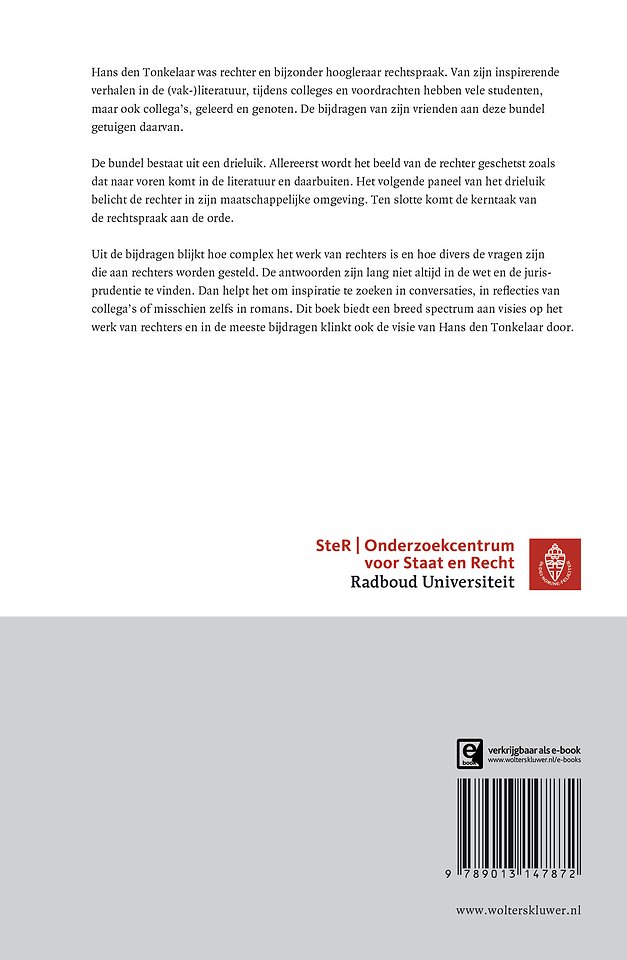 Welk beeld leeft er rondom de rechter? Hoe beweegt de rechter door het maatschappelijke speelveld? En wat is de absolute kerntaak van de rechtspraak? Deze uitgave buigt zich over deze veelal onderbelichte vragen. Uitgebracht ter gelegenheid van het afscheid van Hans den Tonkelaar als rechter en bijzonder hoogleraar rechtspraak.