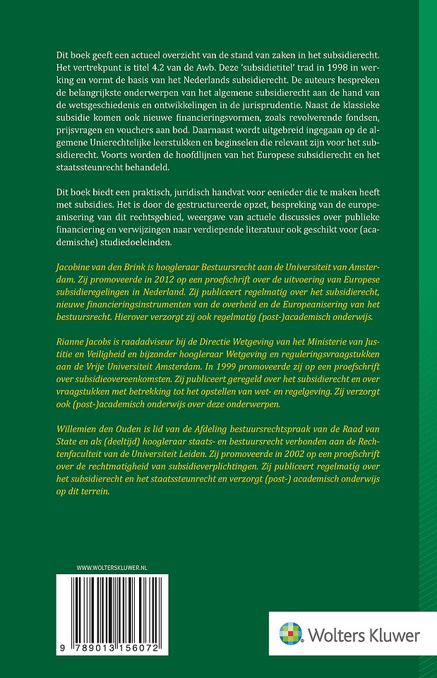 Deze derde druk is sterk in omvang toegenomen. Het handboek is volledig geactualiseerd. Er wordt ook ingegaan op de coronasteunmaatregelen. Deze uitgave bevat daarnaast een extra toevoeging waarin uitgebreid wordt ingegaan op de Europeanisering van subsidierecht. Subsidierecht biedt een praktisch en juridisch handvat voor zowel subsidieverstrekkers als -ontvangers en regelgevers, beleidsmakers en rechtsbijstandverleners.
