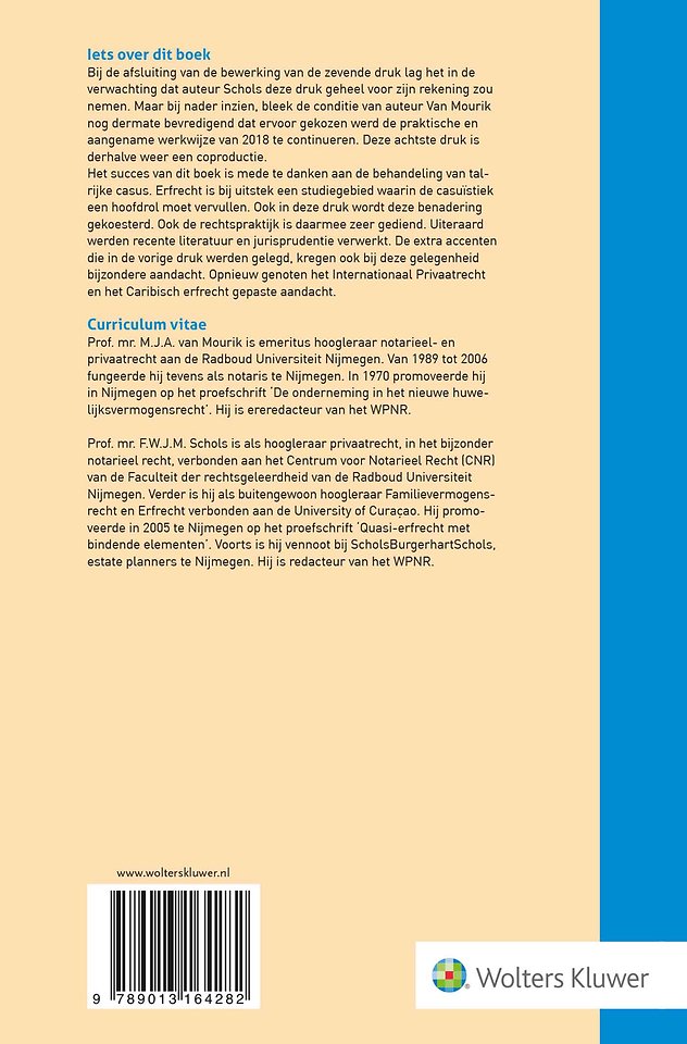 Deze 8e druk is volledig geactualiseerd, maar bevat nog steeds dezelfde aangename en praktische werkwijze van de eerdere uitgaven. De uitgave is hierdoor geschikt voor zowel een zeer grondige kennismaking met de wereld van het erfrecht, als een verdieping door de vele verwijzingen en vermelding van (andersluidende) standpunten.
