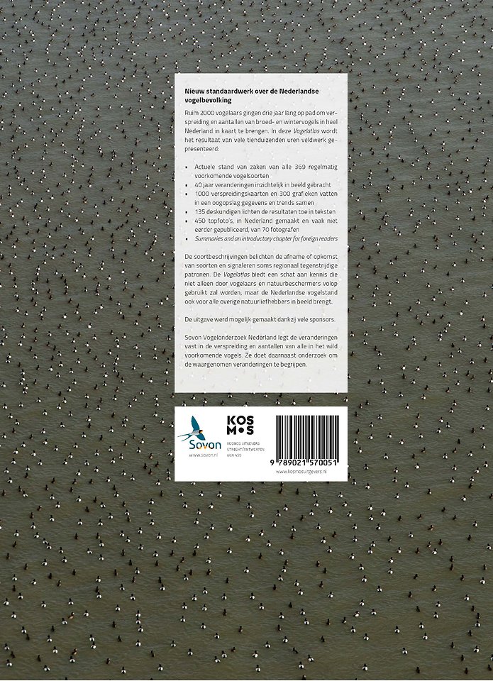 De Vogelatlas van Nederland, samengesteld door Sovon Vogelonderzoek Nederland, toont de veranderingen en laatste stand van zaken m.b.t. de vogelpopulaties in ons land. Betrouwbare informatie die (ook internationaal) gebruikt wordt voor actuele vraagstukken zoals klimaatverandering, natuurbeheer en landbouw.