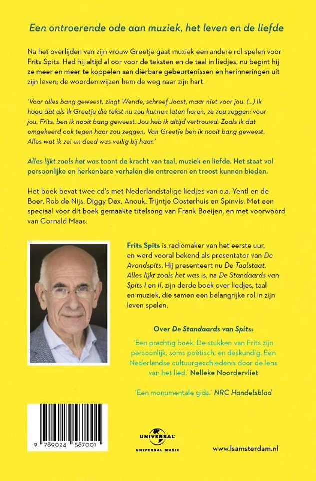 Alles lijkt zoals het was van Frits Spits is een ontroerende, nostalgische en liefdevolle ode aan muziek, het leven en de liefde.