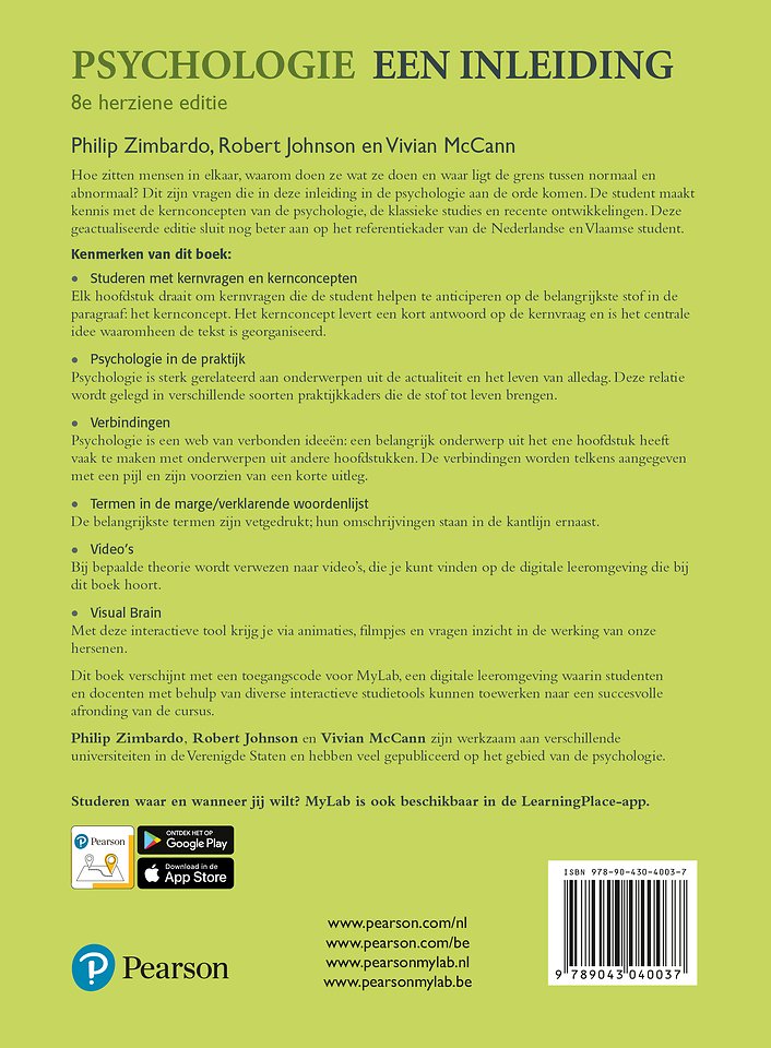 'Psychologie, een inleiding' is geschikt voor studenten in het Nederlands of Belgisch hoger onderwijs die een sociale studie volgen of voor wie hun opleiding een cursus psychologie omvat.