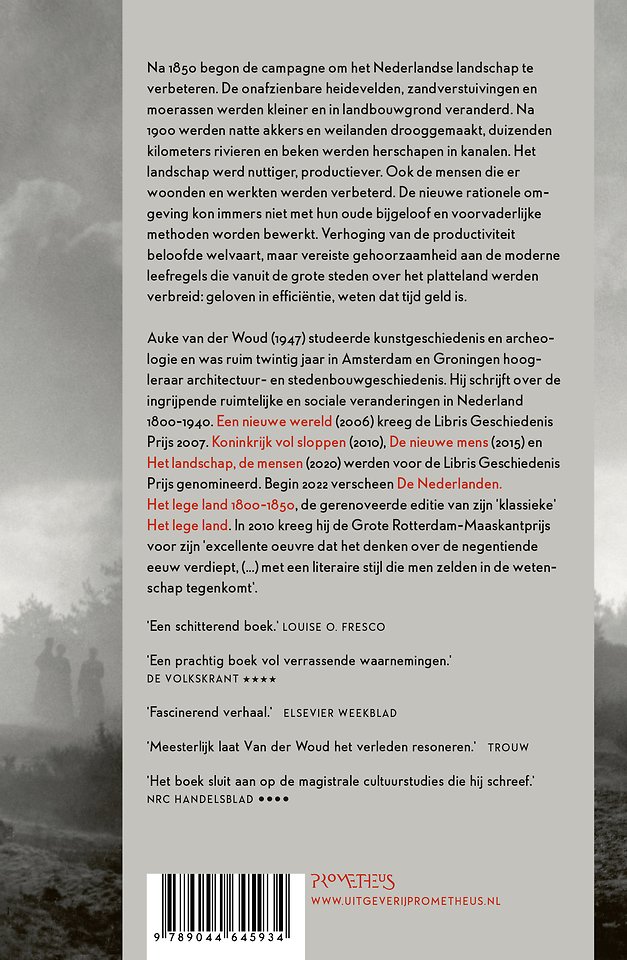 Na 1850 begon de campagne om het Nederlandse landschap te verbeteren. De onafzienbare heidevelden, zandverstuivingen en moerassen werden kleiner en in landbouwgrond veranderd. Na 1900 werden natte akkers en weilanden drooggemaakt, duizenden kilometers rivieren en beken werden herschapen in kanalen. Het landschap werd nuttiger, productiever. Ook de mensen die er woonden en werkten werden verbeterd. De nieuwe rationele omgeving kon immers niet met hun oude bijgeloof en voorvaderlijke methoden worden bewerkt. Verhoging van de productiviteit beloofde welvaart, maar vereiste gehoorzaamheid aan de moderne leefregels die vanuit de grote steden over het platteland werden verbreid: geloven in efficiëntie, weten dat tijd geld is.