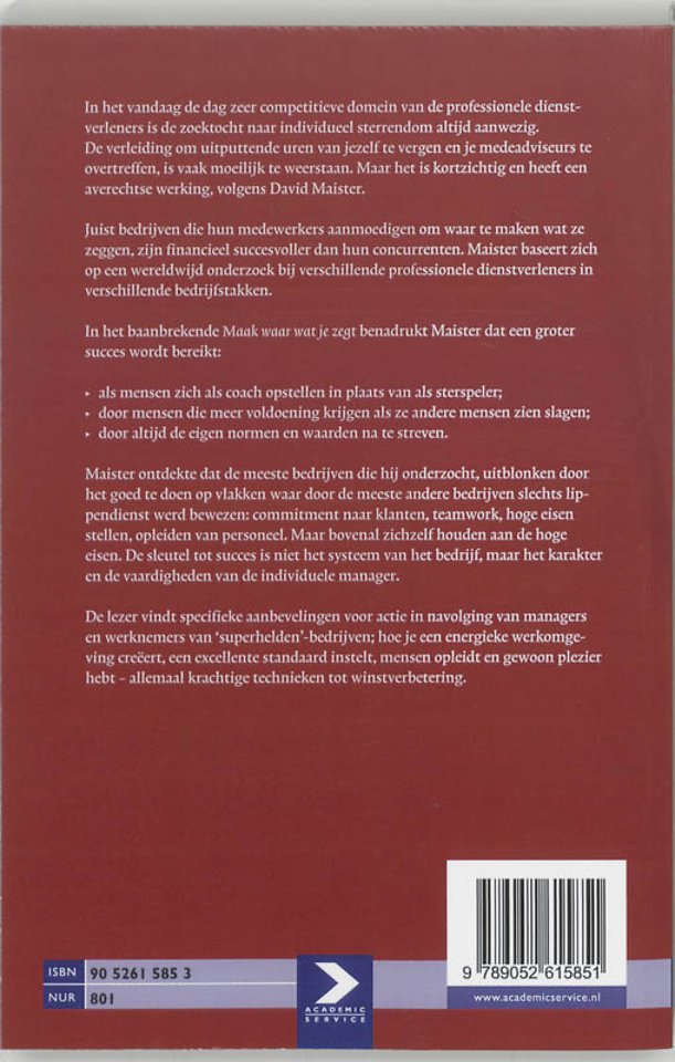 In het baanbrekende 'Maak waar wat je zegt' benadrukt Maister dat een groter succes wordt bereikt: