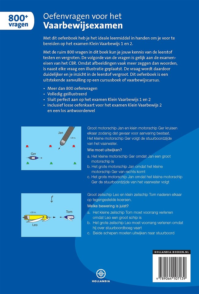 Met de ruim 800 vragen in dit boek kun je jouw kennis van de leerstof testen en vergroten. De volgorde van de vragen is gelijk aan de exameneisen van het CBR. Omdat afbeeldingen vaak meer zeggen dan woorden, is naast elke vraag een illustratie geplaatst. De vraag wordt daardoor duidelijker en je inzicht in de leerstof vergroot. Dit oefenboek is een uitstekende aanvulling op een cursusboek of vaarbewijscursus.