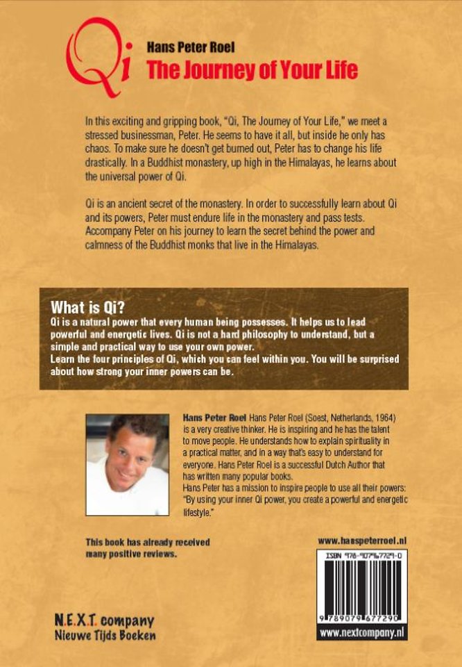 In this exciting and gripping book, Qi, The Journey of Your Life, we meet a stressed businessman, Peter. He seems to have it all, but inside he only has chaos. To make sure he doesn’t get burned out, Peter has to change his life drastically. In a Buddhist monastery, up high in the Himalayas, he learns about the universal power of Qi.