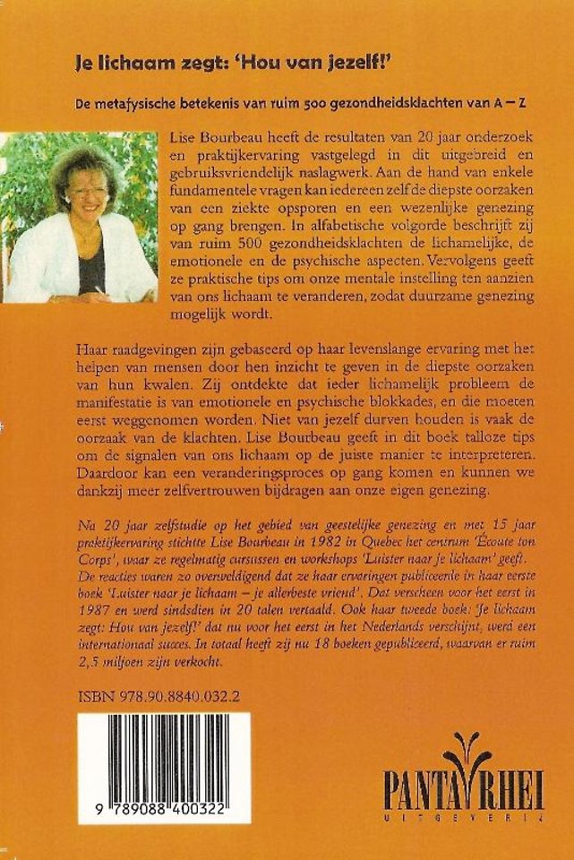 Na 20 jaar praktijkervaring op het gebied van geestelijke genezing publiceerde Lise Bourbeau in 1987 haar eerste boek ‘Luister naar je lichaam – je allerbeste vriend’. Dat werd sindsdien in 20 talen vertaald. Ook haar tweede boek: ‘Je lichaam zegt: Hou van jezelf!’ werd een internationaal succes. In totaal werden ruim 3 miljoen boeken van haar verkocht.