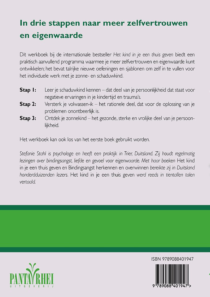 Dit werkboek bij de internationale bestseller Het kind in je een thuis geven biedt een praktisch aanvullend programma waarmee je meer zelfvertrouwen en eigenwaarde kunt ontwikkelen; het bevat talrijke nieuwe oefeningen en sjablonen om zelf in te vullen voor het individuele werk met je zonne- en schaduwkind.