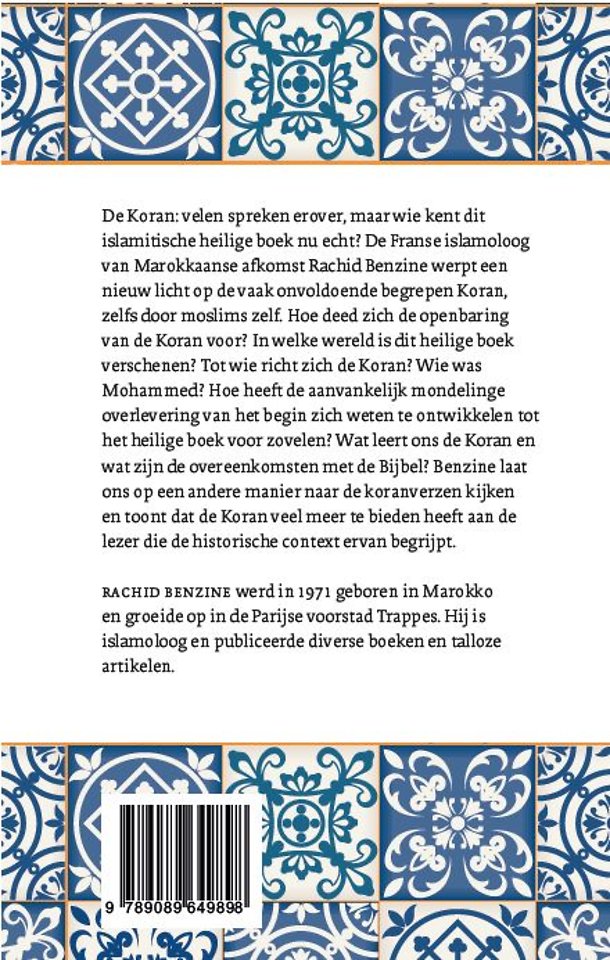 De Koran: velen spreken erover, maar wie kent dit islamitische heilige boek nu echt? De Franse islamoloog van Marokkaanse afkomst Rachid Benzine werpt een nieuw licht op de vaak onvoldoende begrepen Koran, zelfs door moslims zelf. Hoe deed zich de openbaring van de Koran voor? In welke wereld is dit heilige boek verschenen? Tot wie richt zich de Koran? Wie was Mohammed? Hoe heeft de aanvankelijk mondelinge overlevering van het begin zich weten te ontwikkelen tot het heilige boek voor zovelen? Wat leert ons de Koran en wat zijn de overeenkomsten met de Bijbel? Benzine laat ons op een andere manier naar de koranverzen kijken en toont dat de Koran veel meer te bieden heeft aan de lezer die de historische context ervan begrijpt.