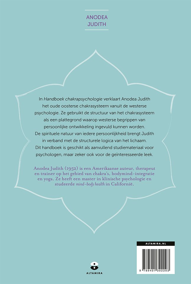 In Handboek chakrapsychologie wordt het oude oosterse chakrasysteem verklaard vanuit de westerse psychologie. Anodea Judith gebruikt de structuur van het chakrasysteem als een plattegrond waarop westerse begrippen van persoonlijke ontwikkeling ingevuld kunnen worden. Zo komt ze tot 'chakrapsychologie'. De spirituele natuur van iedere persoonlijkheid brengt ze in verband met de structurele logica van het lichaam.