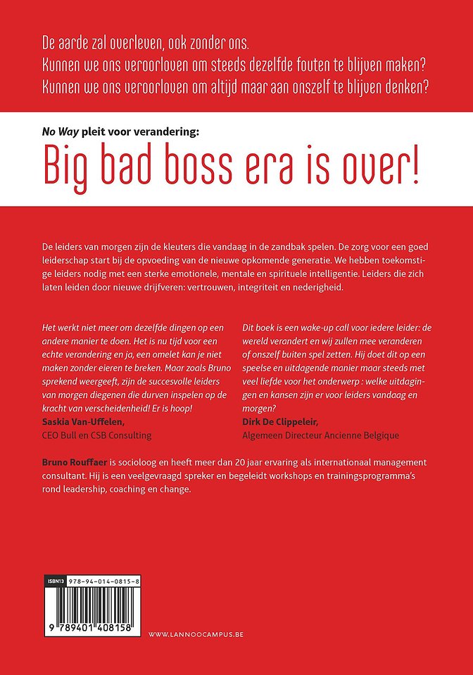 Meer over Bruno RouffaerDe leiders van morgen zijn de kleuters die vandaag in de zandbak spelen. De zorg voor een goed leiderschap start bij de opvoeding van de nieuwe opkomende generatie. We hebben toekomstige leiders nodig met een sterke emotionele, mentale en spirituele intelligentie. Leiders die zich laten leiden door nieuwe drijfveren: vertrouwen, integriteit en nederigheid.