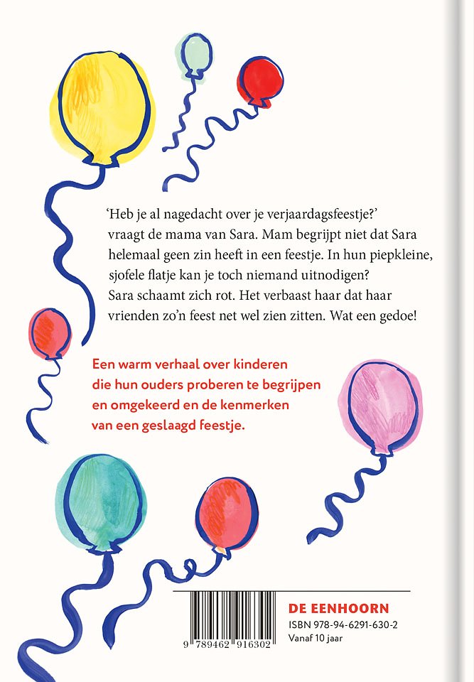 'Heb je al nagedacht over je verjaardagsfeestje?' vraagt de mama van Sara. Mam begrijpt niet dat Sara helemaal geen zin heeft in een feestje. In hun piepkleine, sjofele flatje kan je toch niemand uitnodigen? Sara schaamt zich rot. Het verbaast haar dat haar vrienden zo'n feest net wel zien zitten. Wat een gedoe!