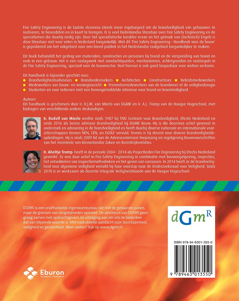 Met dit ‘Fire Safety Engineering - Handboek voor de bouw’ is geprobeerd om het vakgebied voor een breed publiek in het Nederlandse taalgebied toegankelijker te maken. Dit boek behandelt het gedrag van materialen, constructies en personen bij brand en de verspreiding van brand en rook in een gebouw. Het is een naslagwerk met aandachtspunten, mechanismen, achtergronden en vuistregels in de Fire Safety Engineering, speciaal voor de bouwsector. Veel hiervan is ook goed toepasbaar voor andere sectoren.