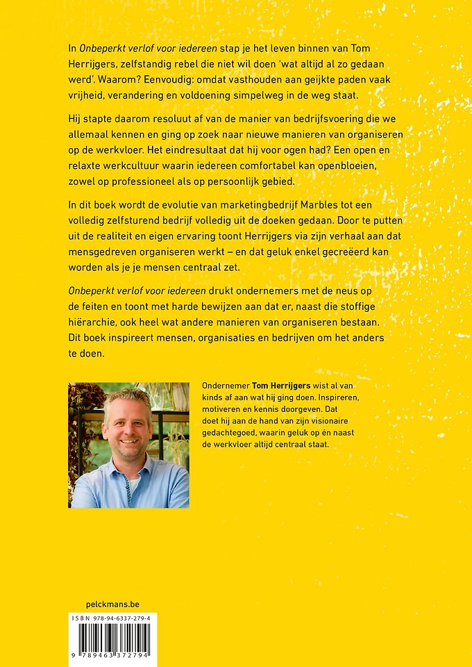 Onbeperkt verlof voor iedereen drukt ondernemers met de neus op de feiten en toont met harde bewijzen aan dat er, naast die stoffige hiërarchie, ook heel wat andere manieren van organiseren bestaan. Het inspireert mensen, organisaties en bedrijven om het anders te doen.