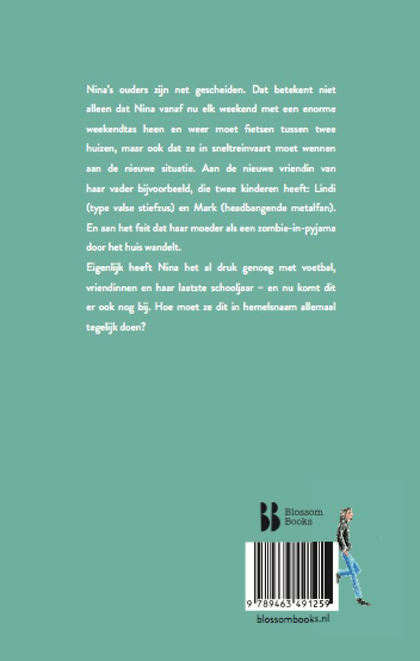 Nina's ouders zijn net gescheiden. Dat betekent niet alleen dat Nina vanaf nu elk weekend met een enorme weekendtas heen en weer moet fietsen tussen twee huizen, maar ook dat ze in sneltreinvaart moet wennen aan de nieuwe situatie. Aan de nieuwe vriendin van haar vader bijvoorbeeld, die twee kinderen heeft: Lindi (type valse stiefzus) en Mark (headbangende metalfan). En aan het feit dat haar moeder als een zombie-in-pyjama door het huis wandelt.