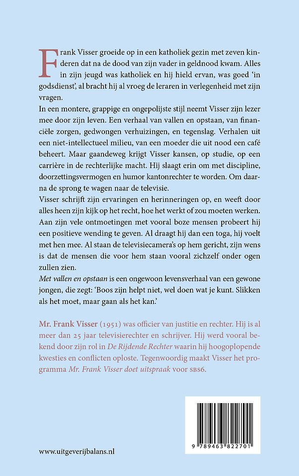 Met vallen en opstaan is een ongewoon levensverhaal van een gewone jongen, die zegt: ‘Boos zijn helpt niet, wel doen wat je kunt. Slikken als het moet, maar gaan als het kan.’