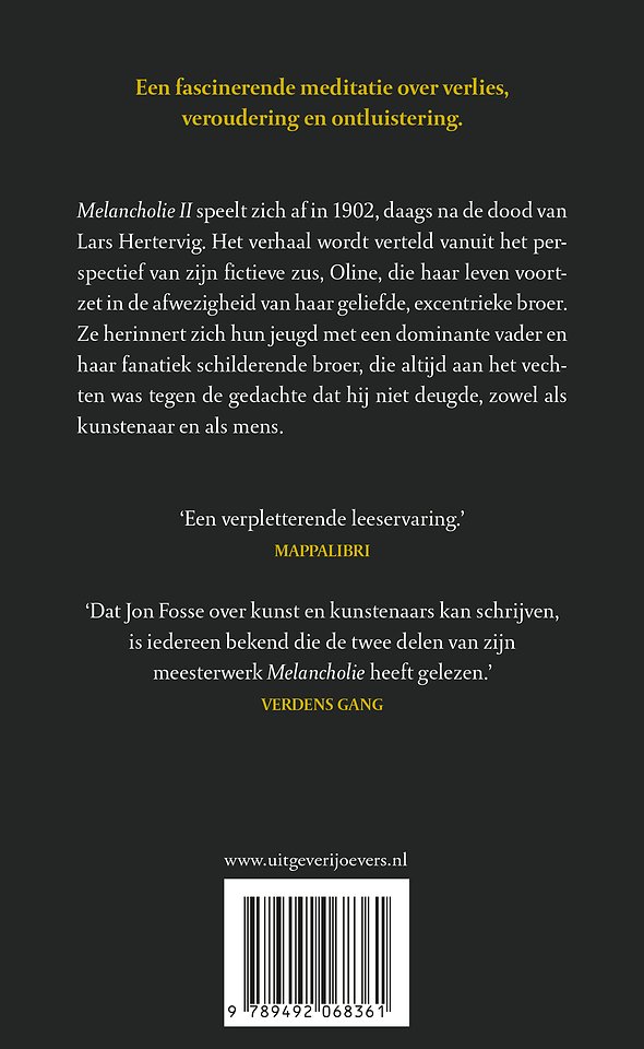 'Het gaat Fosse om de innerlijke ervaring van het ouder worden. En dat weet hij opnieuw beklemmend te verwoorden. Melancholie II is een verpletterende leeservaring. John Fosse toont met dit boek opnieuw aan dat hij tot de absolute top van de Europese literatuur behoort.'