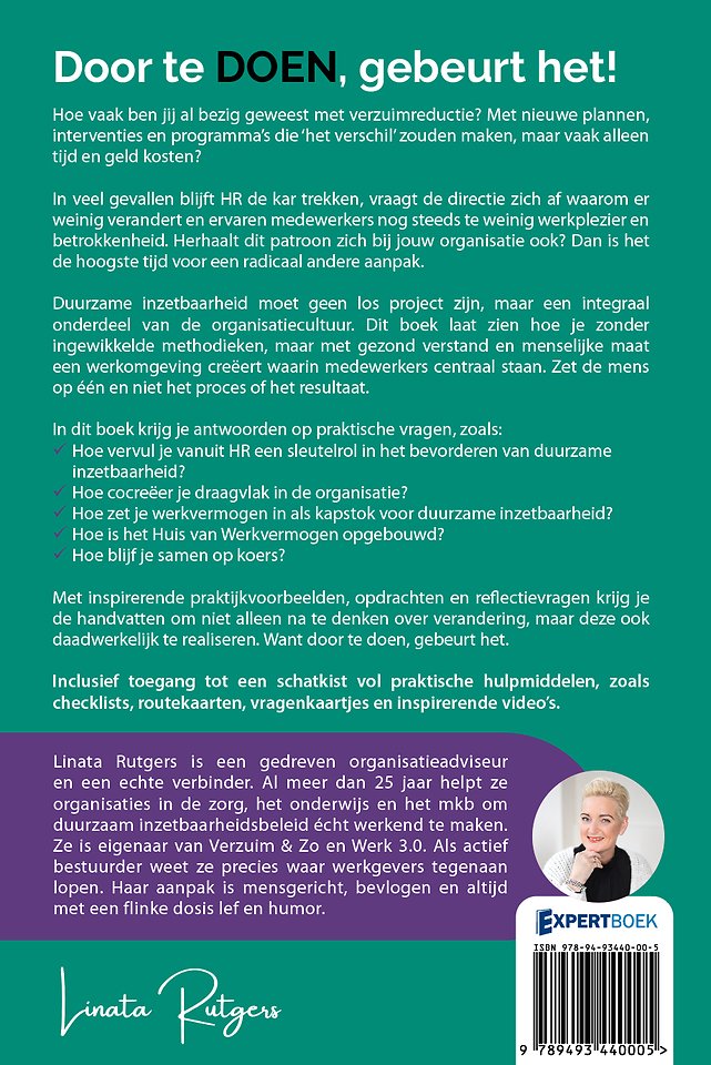 Met inspirerende praktijkvoorbeelden, opdrachten en reflectievragen krijg je de handvatten om niet alleen na te denken over verandering, maar deze ook daadwerkelijk te realiseren. Want door te doen, gebeurt het.