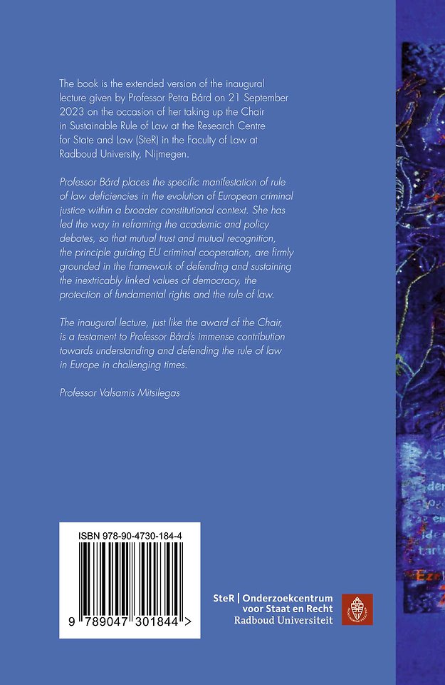 The book is the extended version of the inaugural lecture given by Professor Petra Bárd on 21 September 2023 on the occasion of her taking up the Chair in Sustainable Rule of Law at the Research Centre for State and Law (SteR) in the Faculty of Law at Radboud University, Nijmegen.